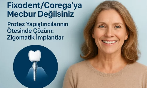 Yıllardır, Fixodent veya Corega gibi diş protezi yapıştırıcılarına bağımlı kalmış olabilirsiniz; konuşurken, yemek yerken ya da diş proteziniz hareket ettiğinde güvensizlik hissi yaşayabilirsiniz. Belki de bir zamanlar, "İmplantlar mümkün değil" ya da "Kemiğinizin kaybı çok fazla" denildi. Bugün, zygomatik implantlar sayesinde, ileri üst çene kemik kaybı olan seçilmiş hastalar, stabil, yapıştırıcı gerektirmeyen, sabit bir çözüme ulaşabilir.